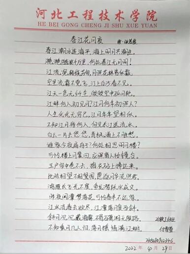 为了丰富同学们的校园文化生活,营造浓厚的古诗文学习氛围。进一步落实新课程标准中关于弘扬民族文化精髓的政策,增加员工经典文化底蕴。特此,必一运动体育公司软件公司于2022年4月29日晚自习开展“经典古诗文”抄写活动。