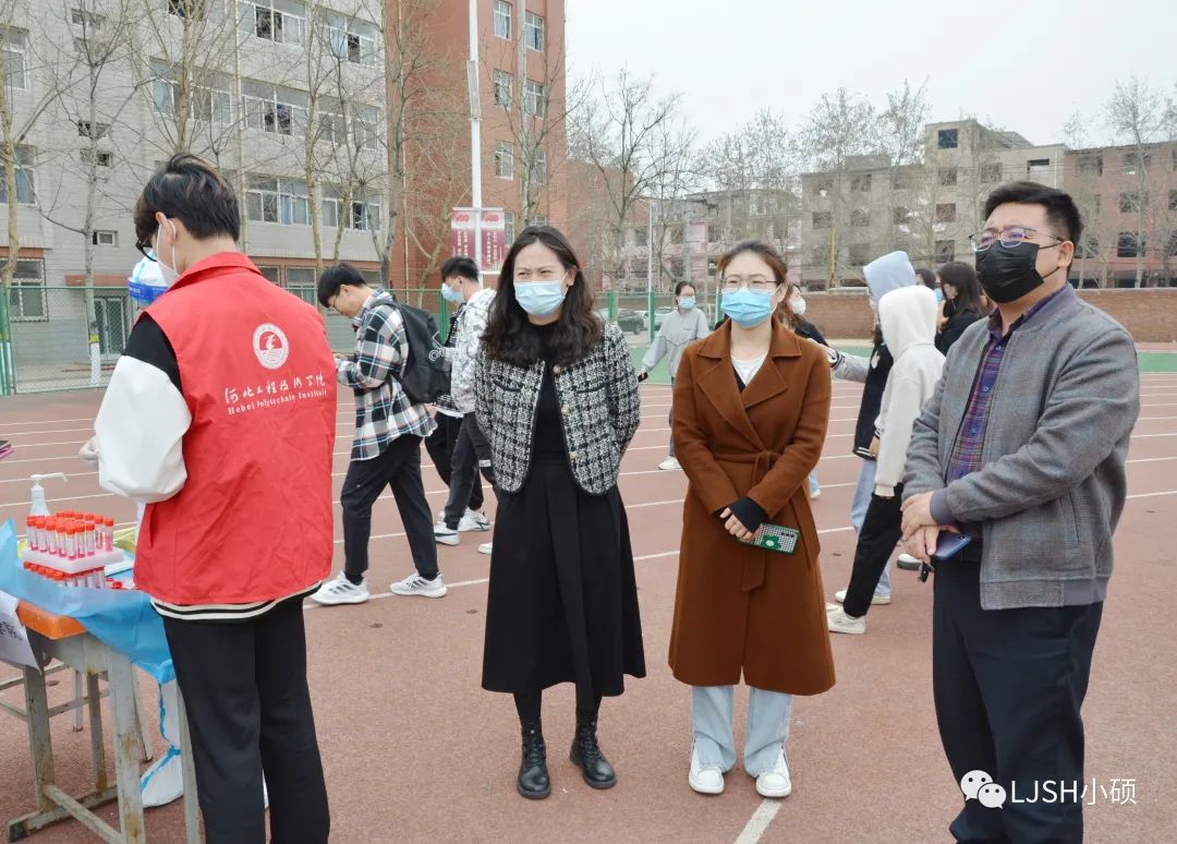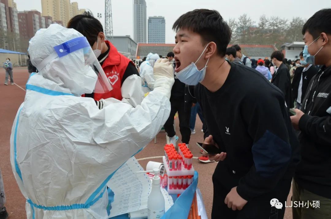 检测中,医护人员技术规范、防疫到位,领导老师亲临现场,统筹安排,社团干部志愿服务,保驾护航,师生齐心,共同战疫。