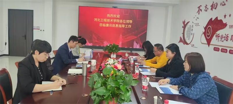 在河北唐讯信息技术股份有限公司王玉江总经理、党支部书记李志虎、副总经理杨雅慧的陪同下,参观了公司发展历程荣誉展厅和新一代通讯技术产教融合成果展厅,听取了公司与省内外高校开展产教融合协同育人工作情况的汇报。参观结束后,校企双方举行了产教融合协同育人座谈会。校企双方领导就校企合作的具体细节进行了交流发言,他们表示,校企合作搭建了企业与公司进行产学研用的桥梁,有效促进了校企双方的互利互赢,合作前景十分辽阔。