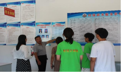 荀志涛向暑期社会实践团队介绍了村卫生院,带领团队成员参观了村图书室,党政活动室等基础设施建设,展现出了乡村振兴战略下农村的新风貌新气象。