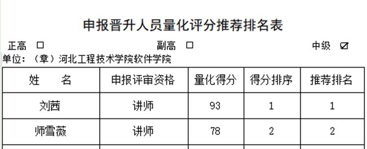 根据省职改办《关于做好2022年全省职称申报评审工作的通知》要求,按照《河北省职称评审条件》文件要求,软件公司组织评审小组集体会议,现将量化打分结果公示如下: