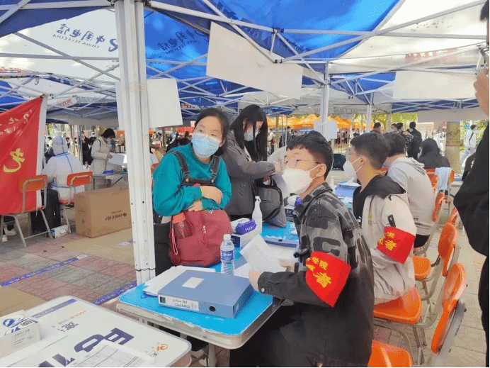校园内志愿者人头攒动