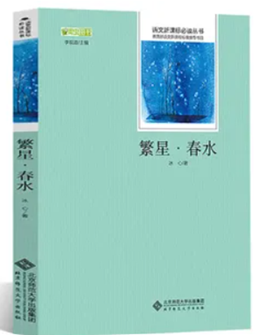 冰心(1900—1999),原名谢婉莹,笔名冰心。现、当代女作家,儿童文学作家。原籍福建长乐,幼年时就广泛接触了中国古典文学名著和译作。第一篇小说《两个家庭》于1919年发表,《斯人独惟悴》《去国》等随后发表,它们是探索人生问题的“问题小说”。受到泰戈尔《飞鸟集》的影响,冰心也写作无标题的自由体小诗,后结集为《繁星》和《春水》出版,被人称为“春水体”。