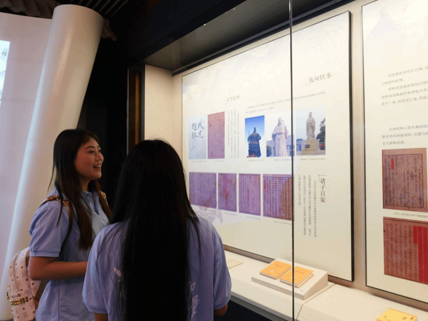 实践团成员深入邯郸市博物馆"历史文化陈列"与"民俗方言展区",通过丰富的展品和多媒体展示,系统了解了邯郸方言的发展脉络。展馆内,古老的方言谚语展板、生动的老城街景复原、珍贵的民俗器物陈列,让成员们仿佛穿越时空,感受到邯郸方言中保留的古汉语韵味。团队成员特别关注了方言语音互动设备,通过聆听地道邯郸话,记录下"得劲""沾不沾"等特色词汇,体会语言背后的文化密码。