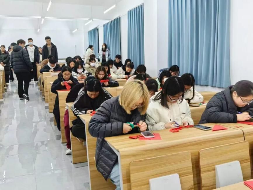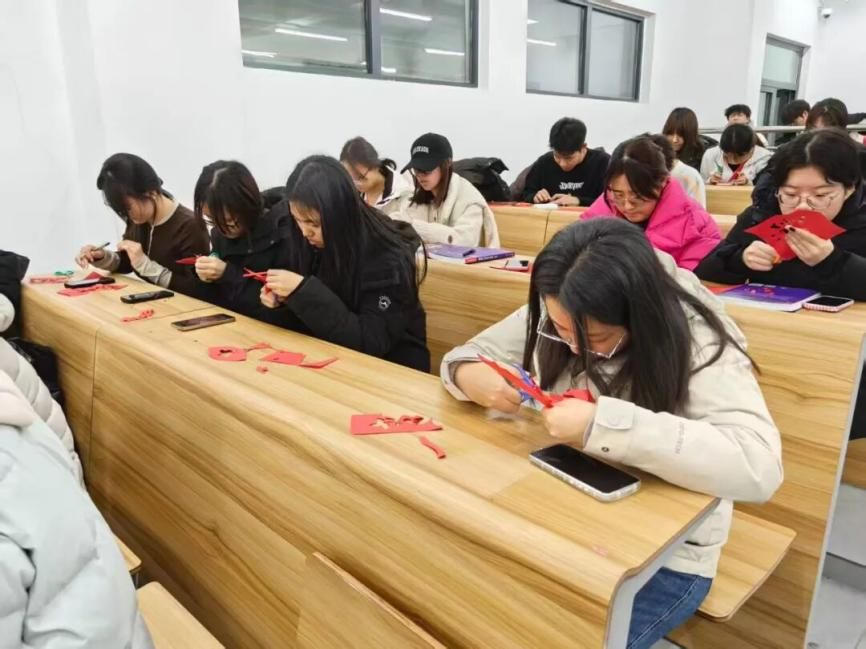 活动过程中,同学们热情高涨,专注投入。大家充分发挥想象力与创造力,或参照模板精心雕琢,或大胆设计独特图案,指尖翻飞间,一张张普通的红纸逐渐变成了栩栩如生的窗花、灵动可爱的生肖、寓意美好的福字等作品。现场氛围轻松融洽,同学们相互交流技巧、分享创意,不时传来阵阵欢声笑语。