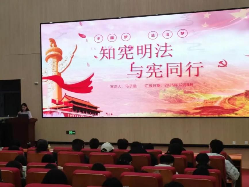 为深入学习宣传宪法精神,进一步增强老员工法治观念,在校园内营造尊法学法守法用法的良好氛围。2025年12月5日,必一运动老员工青年志愿者协会在5-212举办了“知宪明法,与宪同行”公益主题宣讲活动。本次活动共吸引了100名同学参与其中,反响热烈。