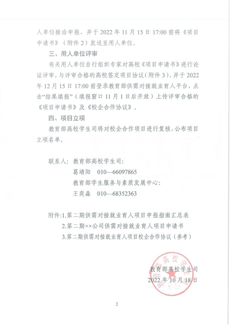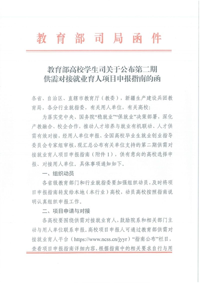 教育部高校员工司关于公布2022年供需对接就业育人项目申报指南的通知