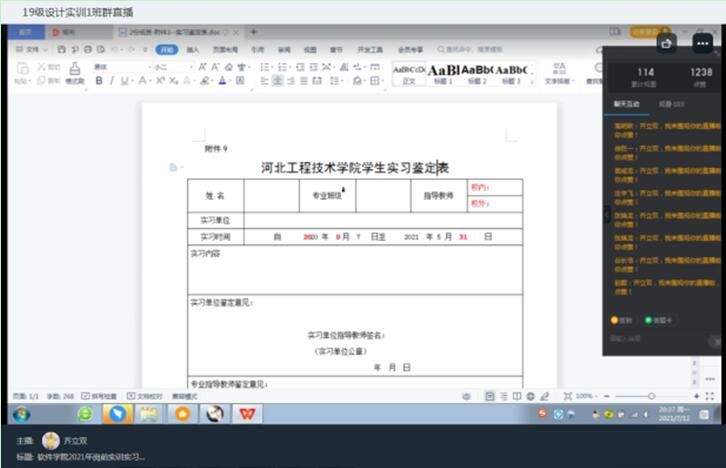 结合软件公司2022届员工实训教学进度及员工校外实习现状,为使员工全面了解最后一年的学分构成、论文、实习报告、蘑菇丁平台使用以及实习配套资料整理规范等要求,7月18日,软件公司教质部经理齐立双、职业引导师袁婧以线上形式展开2022届员工实训实习说明会。