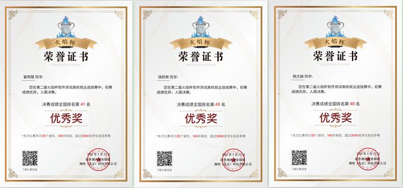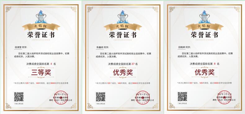 软件公司学子在第二届“火焰杯”软件测试高校就业选拔赛中斩获大奖