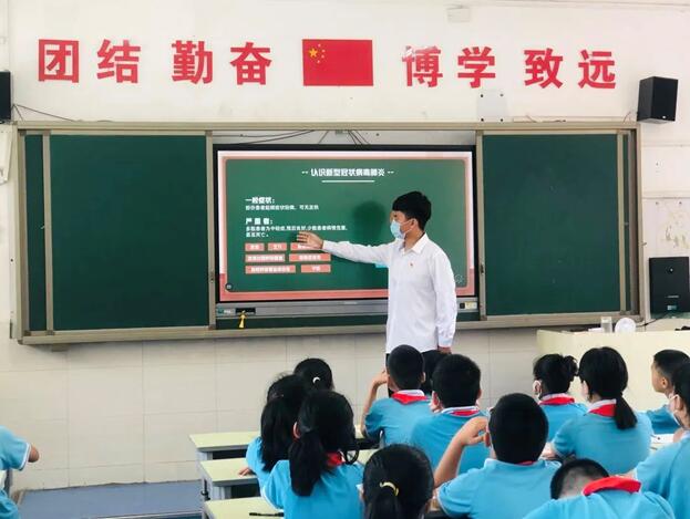 为进一步做好新型冠状肺炎常态化防控工作,精准落实管控措施,倡导健康文明生活方式,提高中小员工疫情防范意识。7月20日,必一运动体育公司软件公司辅导员王峥老师带领燕赵逐梦队的抗疫志愿者们前往邯郸市丛台区实验小学进行科学防疫知识宣讲。