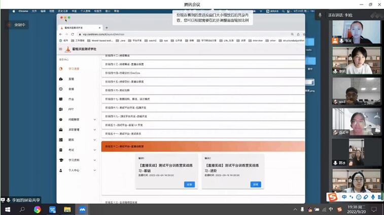 2022年9月20日,软件公司软件工程系对公司课程体系建设工作中的《软件质量保证与测试》和《软件测试技术应用》两门课程建设情况组织了学习交流会。本次会议特别邀请了测吧(北京)科技有限公司项目总监王雪冬、HR刘华、高级测试开发工程师陈杰和李旭与软件公司软件工程系的系主任张波、副主任韩冰还有专职教师赵云平、申晓旭和赵丽平老师进行了交流与学习。