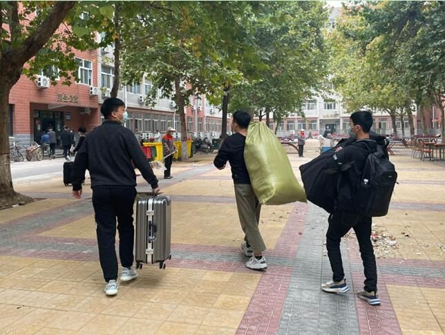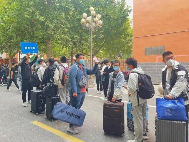 公司领导和老师,期盼着大家的到来!社团干部早上7点集合完毕,等待迎接学弟们!社团干部有序带领大家做核酸检测、领取被褥、搬运行李。一名社团干部对接一个新生,全程护送直至进入宿舍。