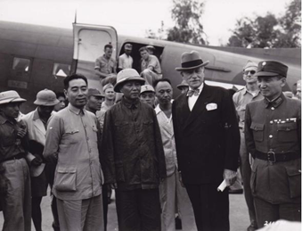 1945年8月15日,日本宣布无条件投降,战后的中国,内战独创丝分裂与民主和平合作的可能性并存,因此全国强烈反对内战,呼吁民主协商,成立联合政府。蒋介石于8月14日、20日、23日给中共发出三封电报,邀请毛泽东亲临重庆,共议国事。为避免内战,争取和平,毛泽东、周恩来等人于28日从延安飞往重庆,1945年8月29日至10月10日,中国共产党同国民党政府在重庆进行了为期43天的和平谈判,史称重庆谈判。