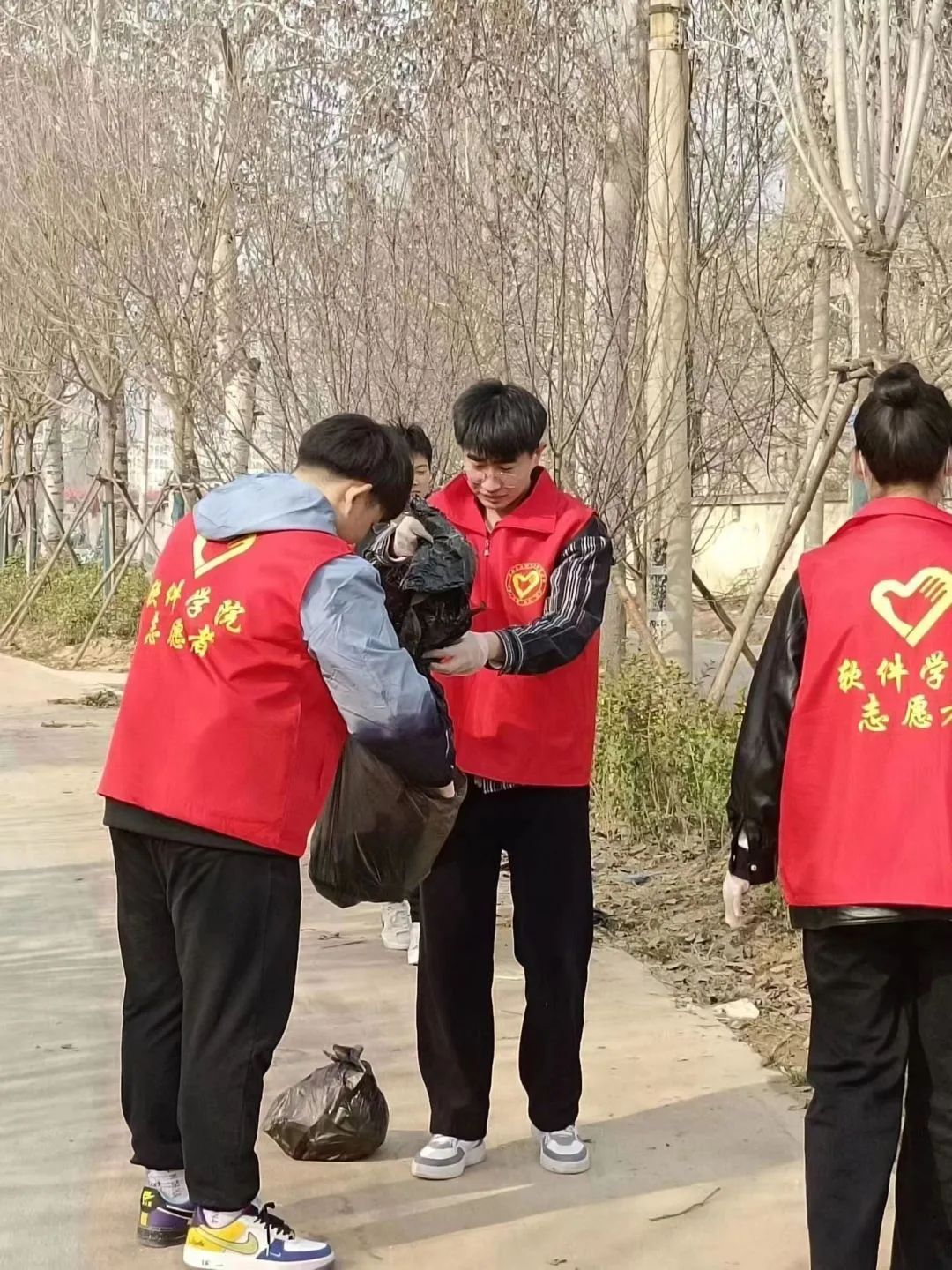 在本次活动开始前,活动组织者组织参与人员集合并分发志愿者马甲和所需工具。活动中志愿者们每个人热情高涨,不怕脏累,有的用手捡起散落在路边的垃圾,有的拿着垃圾袋负责承装,在阳光下志愿者们互帮互助,不仅使环境得到了美化,更是用实际行动践行了“奉献、友爱、互助、进步”的志愿服务精神。