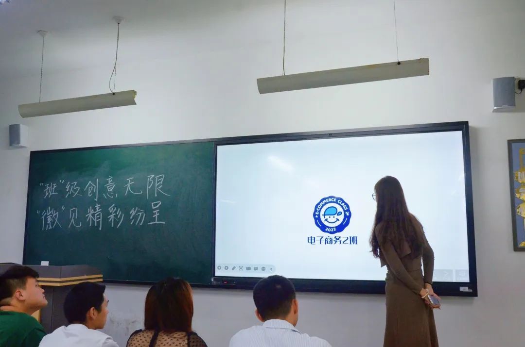 通过一周时间的设计与准备,同学们通过自己丰富的灵感与多彩的展现力,运用多变的线条和丰富的色彩,通过使用制图软件等,设计了一个个富有特别意义的班徽,表达了同学们对自己所在专业的了解,展现了同学们对理想与梦想的追求和渴望。每个班级的代表人依次上台介绍自己及团队的设计灵感,讲解班徽的含义。台下的同学们都聚精会神的听讲。图片
