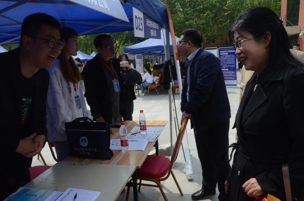 4月27日上午,软件公司协助市人社局、市教育局联合举办了“就业在‘冀’·职引未来”2023年石家庄市公共就业服务进校园软件和信息技术服务行业招聘会。在招聘会现场,软件公司赵冬梅经理、党总支书记王亚杰、教学副经理张波,特意与河北特乐信息科技有限公司、河北乐坤信息技术有限公司、河北博岳通信技术股份有限公司、河北红点通讯服务有限公司、平安普惠信息服务有限公司石家庄第一分公司、石家庄文腾商贸有限公司、石家庄朗宁体育用品科技有限公司等7家企业进行现场岗位对接交流。